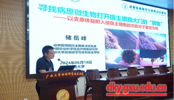6月18日下午,中国农业科公司兰州兽医研究所(以下简称研究所)一行4人到访beat365。朱启运副所长与储岳峰研究员应邀到beat365开展学术交流,在318报告厅分别作题为《动物呼吸道病毒研究进展》和《寻找病原微生物打开宿主细胞大门的“钥匙”——以支原体黏附入侵宿主细胞的功能分子鉴定为例》的学术报告。会议由beat365副经理何家康教授主持,近100名师生参加了报告会。