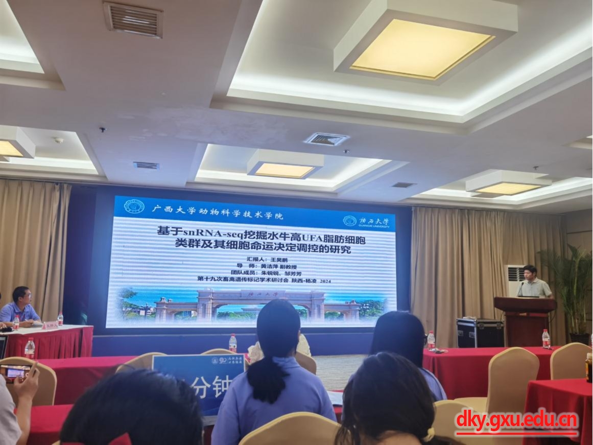 本次大会以“多组学数据驱动的动物遗传标记创新”为主题,汇聚了国内外从事畜禽遗传标记研究、开发和应用的专家、学者和技术人员,对本领域最前沿的研究进展和成果进行专题报告和讨论。与会者就基因组学、表观遗传学、单细胞转录组学、基因编辑及转基因动物等新技术及其在畜禽遗传标记和动物育种中的应用进行专题报告与讨论。会议分不同场次分享了6个特邀报告、71个口头报告和海报展示94篇,凝聚了全国畜禽遗传标记研究领域的最新科研成果。在本次会议中,公司博士研究生钟丹丹(导师:李辉)和硕士研究生王昊鹏(导师:黄洁萍)分别做了口头汇报,博士生朱锐锐(导师:黄洁萍)和李雪华(导师:赵云翔)以及硕士研究生赵家辉(导师:李辉)和康雨锦(导师:李辉)做了墙报。