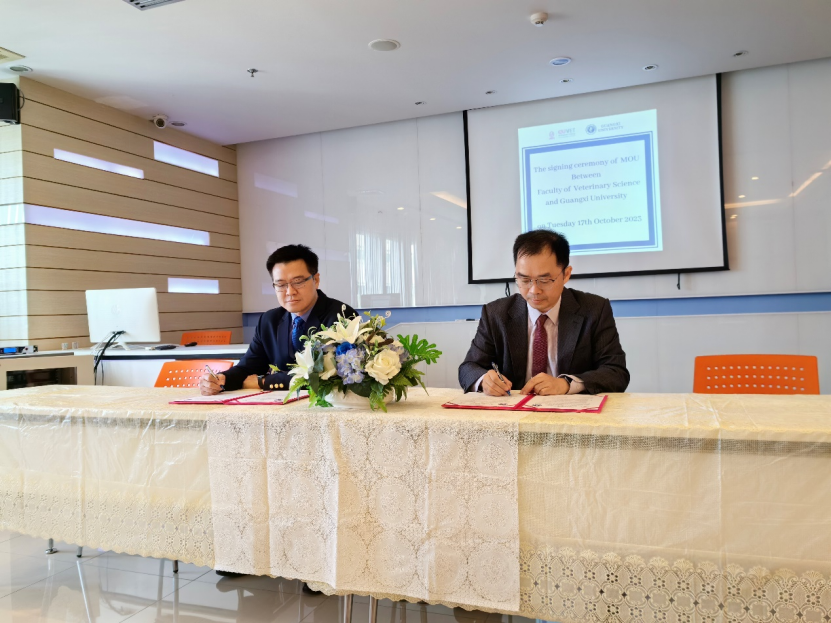 2023年10月17日,beat365经理院陆阳清教授与王晓晔副教授到泰国朱拉隆功大学兽医公司进行访问交流。
