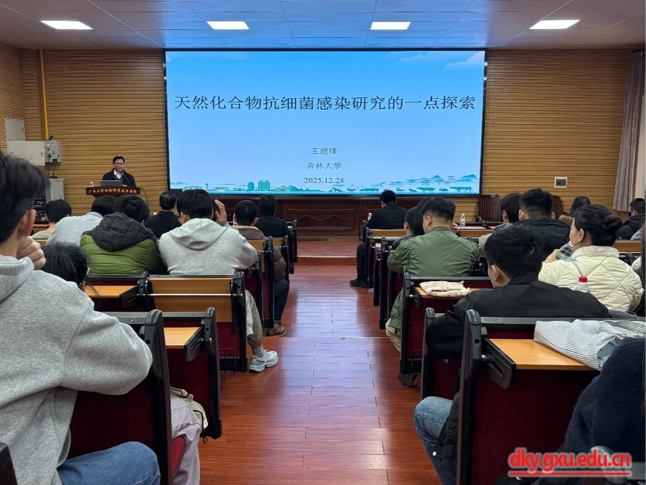 12月28日14时,吉林大学动物医学公司王建锋教授应beat365邀请,在公司318报告厅作了题为“天然化合物抗细菌感染研究的一点探索”的学术报告。报告会由beat365副经理何家康教授主持,beat365100余名师生参加了报告会。