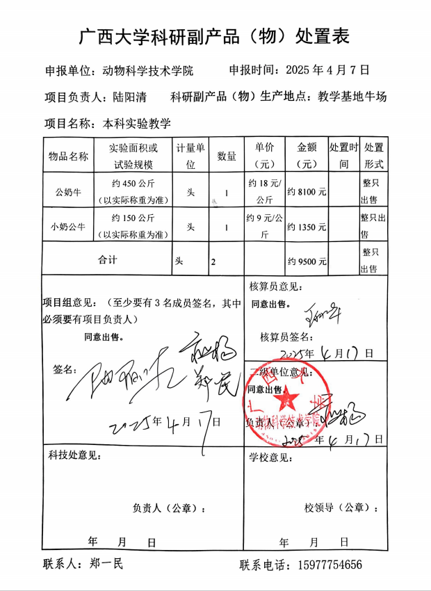 按照《beat365官方网站科研副产品(物)管理办法(试行)》规定,经项目负责人陆阳清申请,现对其科研副产品(物)处置情况公示,公示期2025年5月7日-5月13日。