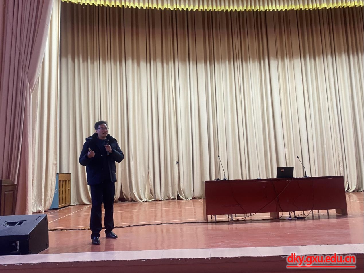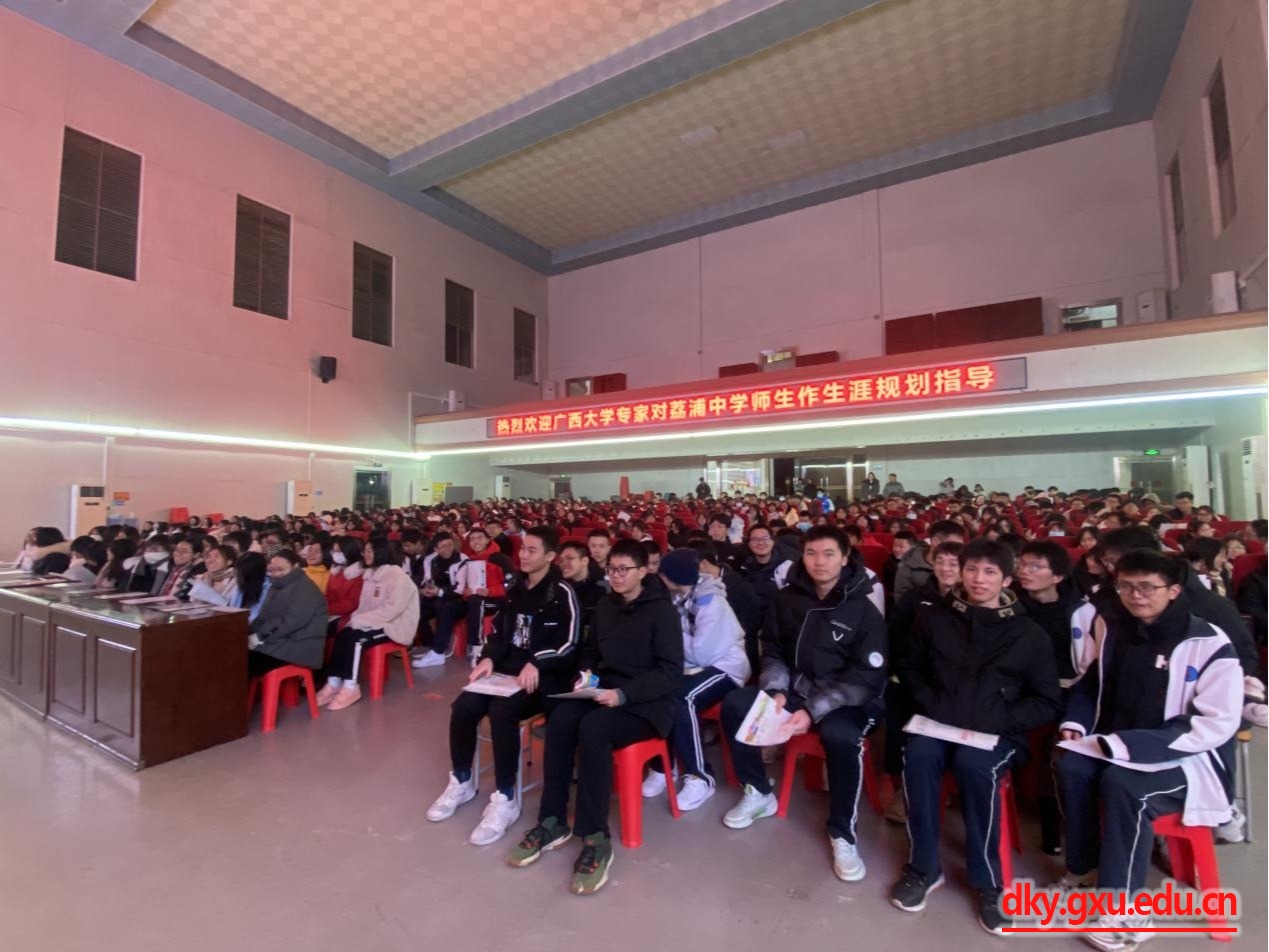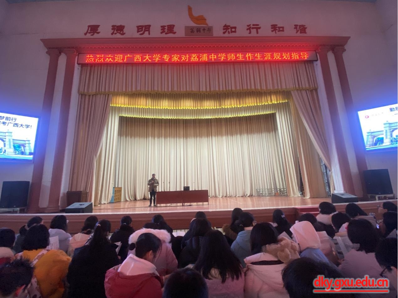 为切实提升beat365官方网站本科生生源质量,吸引更多优秀学子到公司深造,12月21日,动物科学技术公司党委书记韦小强带队,副经理何家康、副经理蒋钦杨、团委书记李丽娜、教学秘书覃志彪、专职组织员施君一行六人前往自治区示范性公司荔浦中学开展招生宣传。荔浦中学高三年级400余名员工及班主任老师在公司报告厅聆听宣讲报告。