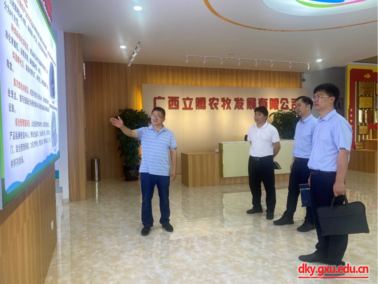 韦小强一行分别走访参观了广西皇氏集团中巴奶水牛繁育示范牧场、广西创亿养殖有限公司、广西立腾农牧发展有限公司,与公司负责人座谈交流,深度了解用人单位对毕业生的知识、能力、素质要求,双方就建立日常联系互访机制,“校、地、企”联合育人,产学研相互促进等方面达成共识。