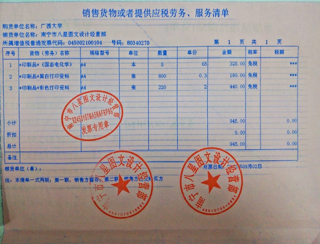 (3)在同一家文印店打印复印费报销金额达1500元以上,另附文印店结账登记本清单复印件并加盖开票单位公章或发票专用章,清单注明内容、数量、单价、合计金额等。